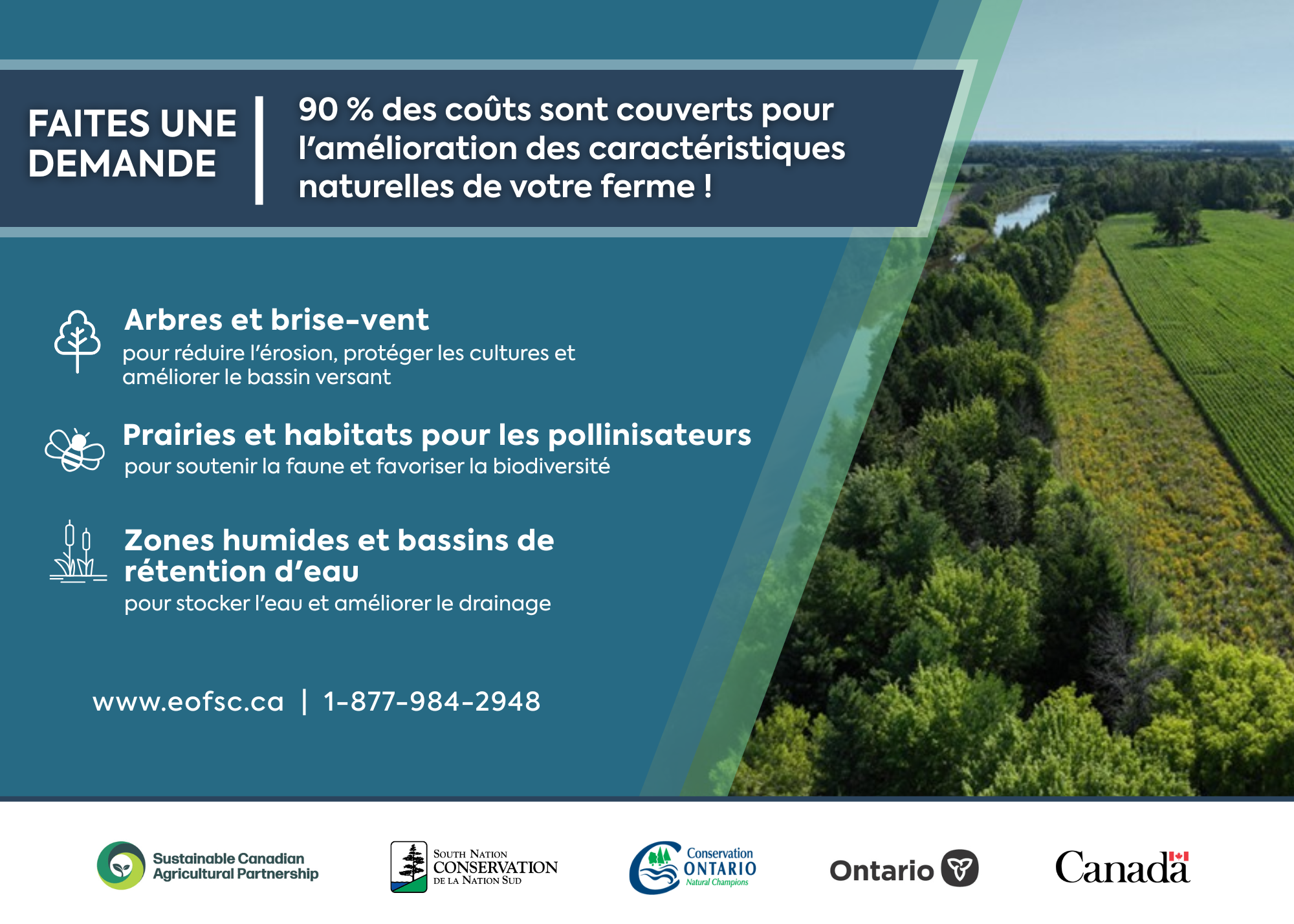 Conservation de la Nation Sud (CNS), au nom du Eastern Ontario Farm Stewardship Collaborative, est fière de mettre en œuvre le Programme de paysages agricoles résilients (PPAR) Initiative pour les terres marginales sur une période de trois ans (2025–2027). Grâce à un financement obtenu en 2025, cette initiative appuie le développement, la sensibilisation et la réalisation de projets offrant des avantages environnementaux durables sur les terres agricoles.
