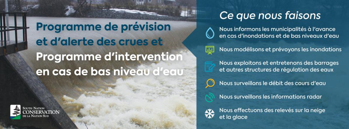 Conditions sur le bassin versant — Risque de crue : préavis de crue possible basé sur des prévisions de pluies abondantes, de fonte des neiges, de forts vents ou autre.
