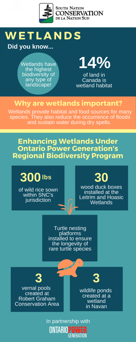 In 2016, South Nation Conservation (SNC) completed a three-year Biodiversity Project in partnership with Ontario Power Generation (OPG). The Project restored habitats for plants and animals in Woodlands, Wetlands and Grasslands! Project deliverables and highlights can be discovered below.